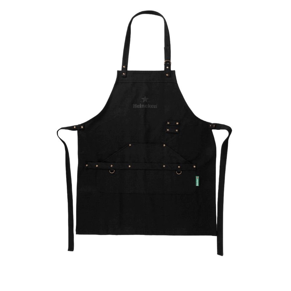 - Heineken BBQ-schort zwart: Een schort speciaal ontworpen voor gebruik bij barbecues, uitgevoerd in de kleur zwart en voorzien van Heineken-branding. Het doel is om zowel praktisch te zijn voor barbecue gebruik als om de merkbeleving van Heineken te versterken.